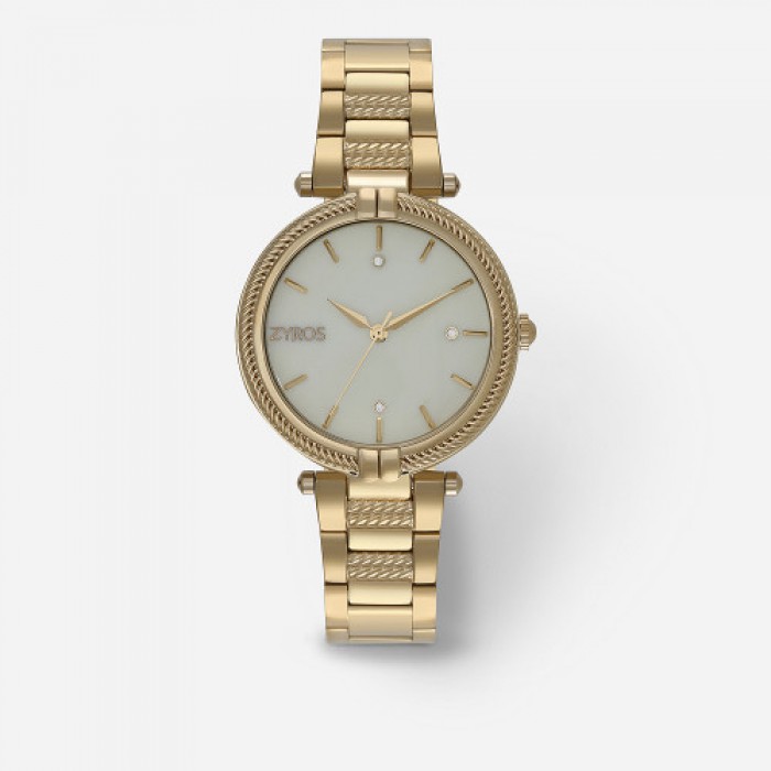 ساعة نسائية من ماركة زايروس مصنوعة من الستانلس ستيل يطغى عليها الطابع الأنثوي الساحر، مع تفاصيلها البسيطة التى تزيد من أناقتها على معصمك. الساعة يغطيها اللون الفضي مع تداخل اللون الفضي بالسوار، وإطار سميك بحواف بارزة لمظهر أكثر فخامة وميناء مصقول باللون الأبيض. مقاس الجرم 30